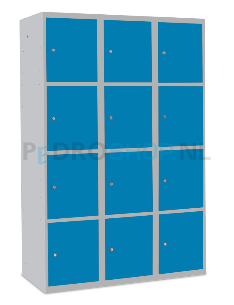 SQ Classic lockerkast, 3-koloms, 12-deurs, blauw, h180*b120*d50 cm