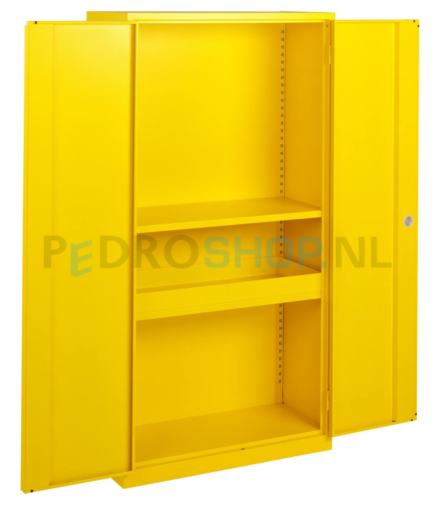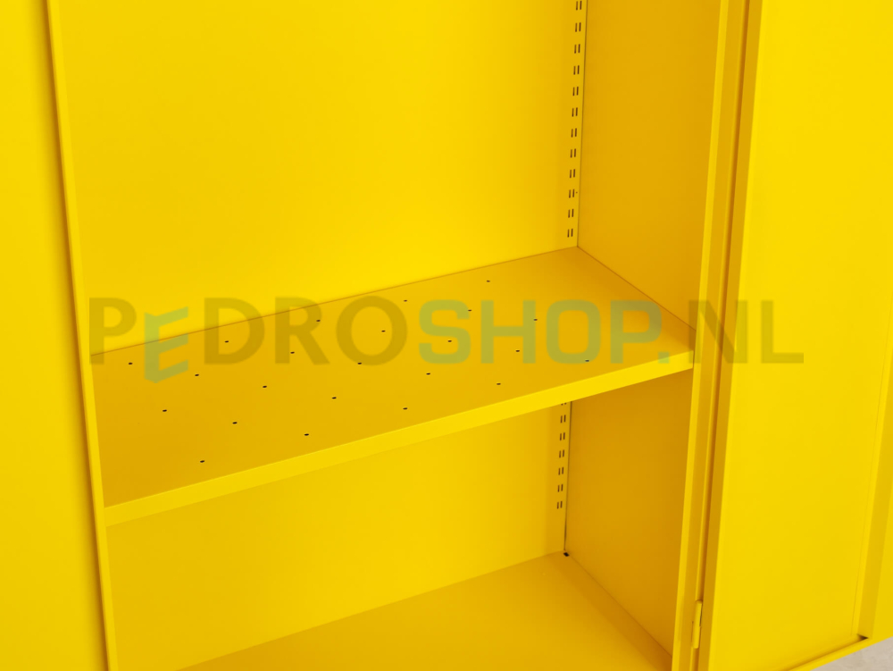 Veiligheidskast PDC-195, 195*100*45 cm, voorzien van geperforeerde legborden, geel