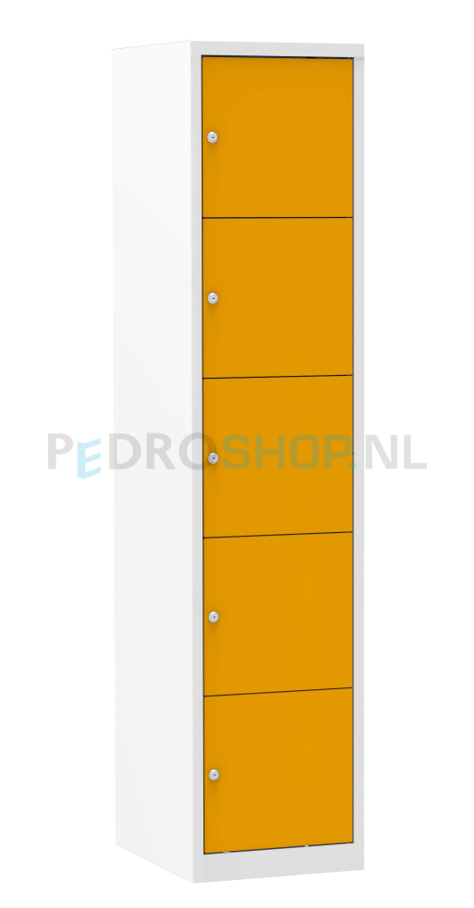 Lockerkast PDC-M545, 1-koloms, 5-deurs, 40 cm breed, geel