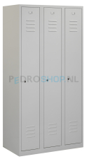 Garderobekast PDC-185, 3-kolom, 3-deurs, 90 cm breed, lichtgrijs