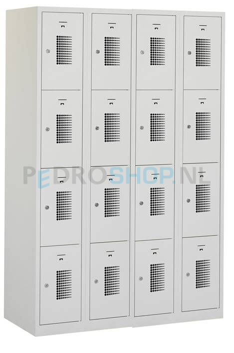 Lockerkast PDC-300, 4-koloms, 16-deurs, 120 cm breed, lichtgrijs