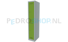 De locker is voorzien van 2 deuren per kolom. Achter iedere deur bevindt zich 1 kledingstang met haken.