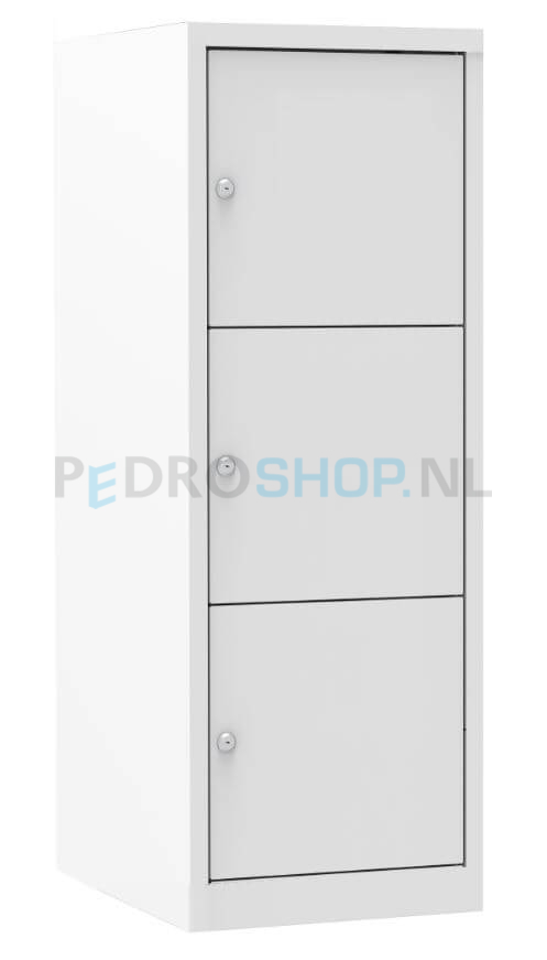 Halfhoge lockerkast PDC, 1-koloms, 3-deurs, 30 cm breed, wit