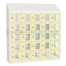 SQ Classic kantine locker, 5-koloms, 25-deurs, transparant venster, crème