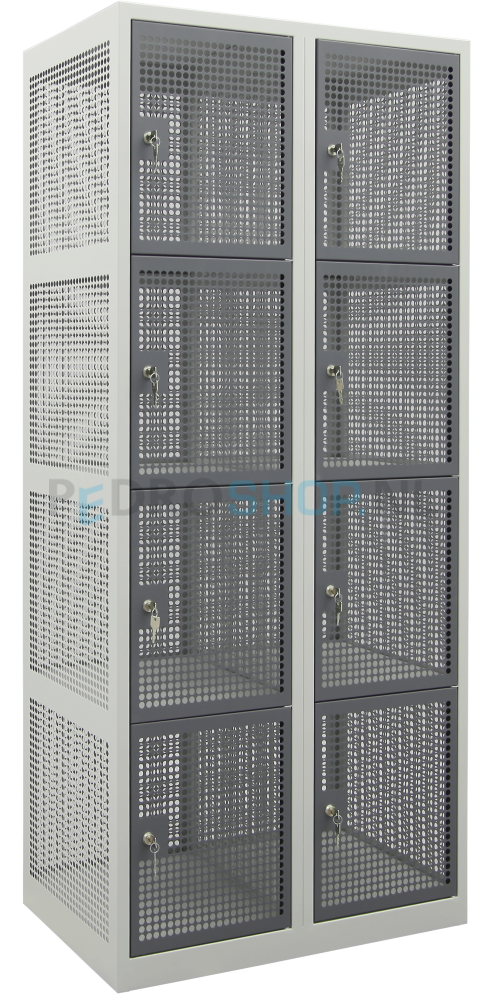 Gaas lockerkast PDC, 2-koloms, 8-deurs, 80 cm breed, aluminium