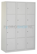 Lockerkast PDC-T310, 3-koloms, 12-deurs, 120 cm breed, lichtgrijs