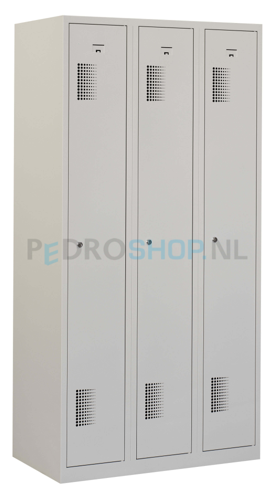 Garderobekast PDC-180, 3-koloms, 3-deurs, 90 cm breed, lichtgrijs