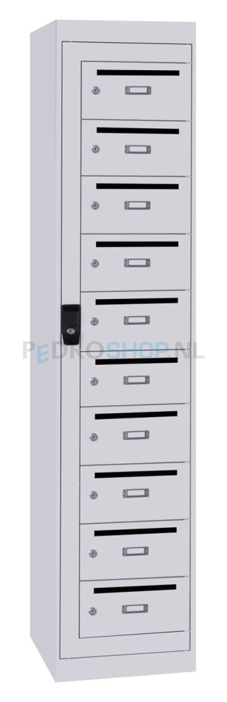 De PDC-640 postvakkenkast biedt ruimte voor verdeling en opbergen van post voor 10 medewerkers of inwonende. Naast opbergen van post is in de postvakkenkast PDC-640 ook ruimte voor het opbergen van persoonlijke eigendommen en/of een kleine tas.
