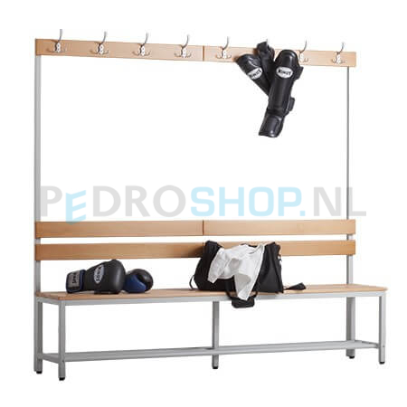 De PDC-H200 garderobezitbank met 8 dubbele garderobehaken is een aanvullend product om de kleedruimte volledig in te richten, geordend en opgeruimd te houden. De PDC-H200 garderobezitbank is geschikt voor plaatsing tegen de muur, maar ook uitermate geschikt voor ruggelingse plaatsing voor een dubbele uitvoering voor bijvoorbeeld plaatsing centraal in de ruimte.