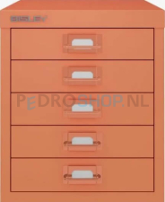 Meerladenkast Bisley-5, A4 formaat, 5 laden, handgreep gekleurd, coral