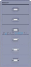 Dit is de Bisley meerladenkast met 6 laden en gekleurde handgreep uit de 29-serie. De meerladenkast is volledig vervaardigd uit metaal. De hoogte van de kast is 59 cm en de breedte 27,9 cm. De diepte van de kast is 38 cm – uitermate geschikt voor opbergen van A4 formaat documentatie.