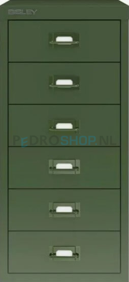 Meerladenkast Bisley -6, A4 formaat, 6 laden, handgreep gekleurd, olijfgroen