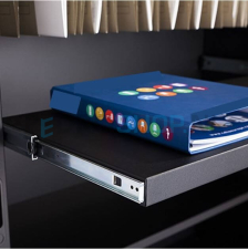 Middels een uittrekbaar legbord maakt u het mogelijk om dossiers bij de kast uit te zoeken, te gebruiken voor verwerking en dergelijke en vervolgens weer netjes in de ordners of hangmappen op te bergen. Zie het uittrekbare legbord als raadpleegplank bij de roldeurkast.