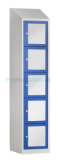 Lockerkast PDC-330, 1-koloms, 5-deurs, transparant venster, blauw