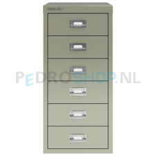 Dit is de Bisley meerladenkast met 6 laden uit de 29-serie. De meerladenkast is volledig vervaardigd uit metaal. De hoogte van de kast is 59 cm en de breedte 27,9 cm. De diepte van de kast is 38 cm – uitermate geschikt voor opbergen van A4 formaat documentatie.