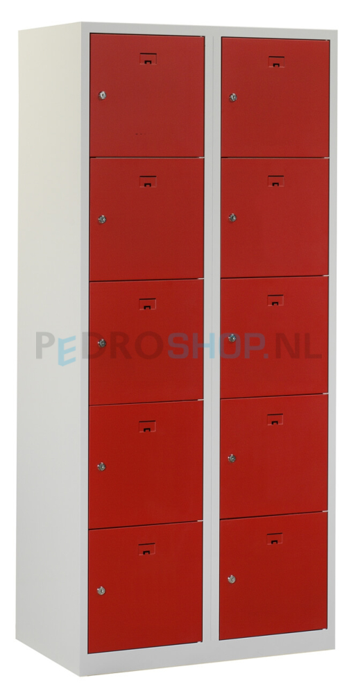 Lockerkast PDC-T310 , 2-koloms, 10-deurs, 80 cm breed, rood
