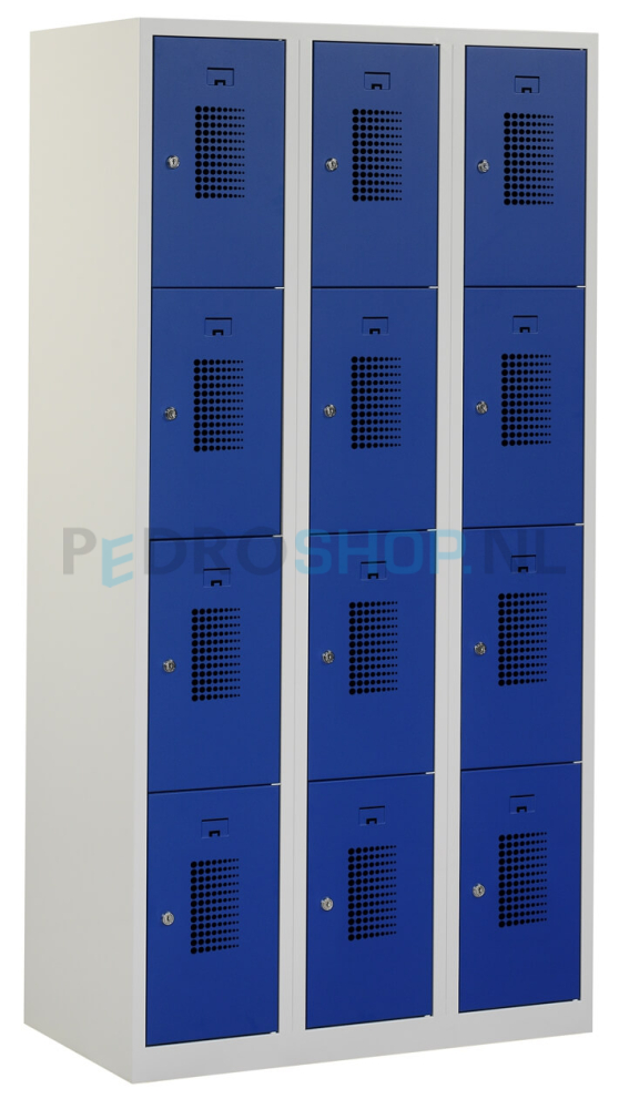Lockerkast PDC-300, 3-koloms, 12-deurs, 90 cm breed, blauw