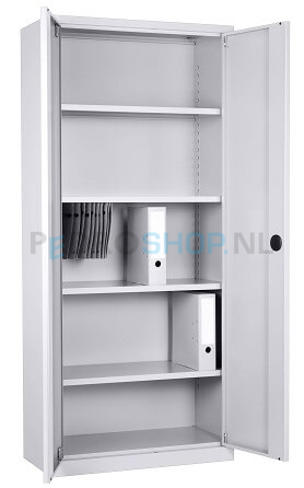 Documentatie, ordners of gereedschap kan veilig in de draaideurkast PDC-180 worden opgeborgen. De kast is namelijk afsluitbaar middels een cilinderslot. Bijgeleverd worden 2 sleutels. Het cilinderslot is verwerkt in een verzonken draaigreep. Kast wordt afgesloten middels een 2-puntssluiting.
