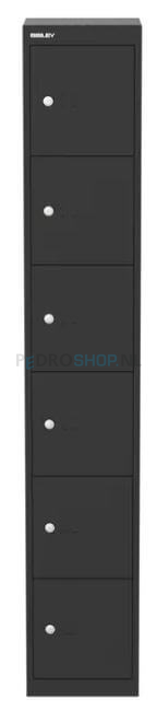 Bisley Basic lockerkast, 30,5 cm breed, 1-koloms, 6-deurs, zwart