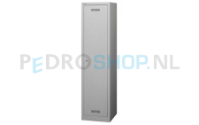 De locker is voorzien van 1 deur per kolom. Achter de deur bevindt zich 1 legbord en 1 kledingstang met haken. Het legbord kan 14 kg dragen en de kledingstang kent een draagcapaciteit van 10 kg.