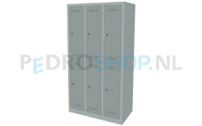 Bisley Monobloc garderobekast, 3-koloms, 6-deurs, lichtgrijs, 90 breed