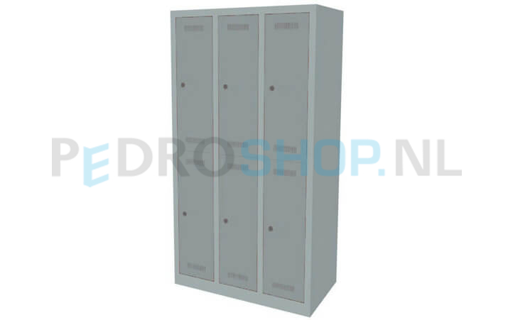 Bisley Monobloc garderobekast, 3-koloms, 6-deurs, lichtgrijs, 90 breed