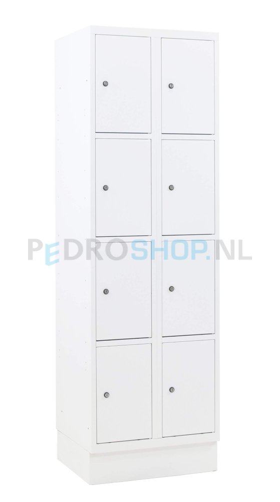 De plint is vervaardigd uit sterk staal van 1,6 mm dik en uitgevoerd in een terugliggende variant. Hierdoor valt de plint subtiel onder de kast, wat het geheel een strak en modern aanzicht geeft. Met een hoogte van 14 cm komt de totale hoogte van de kast op 194 cm.