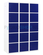 SQ Classic lockerkast, 3-koloms, 15-deurs, blauw, h180*b120*d50 cm