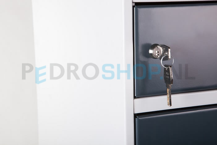 De laptopkast beschikt over een slot voor elk vak. Elk vak beschikt standaard over een cilinderslot (met 2 sleutels per slot). Ook is er de mogelijkheid om de vakken te voorzien van valgrendelsloten. Op aanvraag kunnen er ook mechanische cijfersloten of elektronische pincode sloten gemonteerd worden op de vakken. Let wel op dat bepaalde sloten een levertijd kennen, dit kan op aanvraag besproken worden.