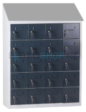 Met een afmeting van h109 x b81 x d30 cm biedt de kast voldoende ruimte voor 20 mini lockers, verdeeld over 4 kolommen met ieder 5 lockers. Elke locker heeft een afmeting van h16 x b15 x d27 cm.