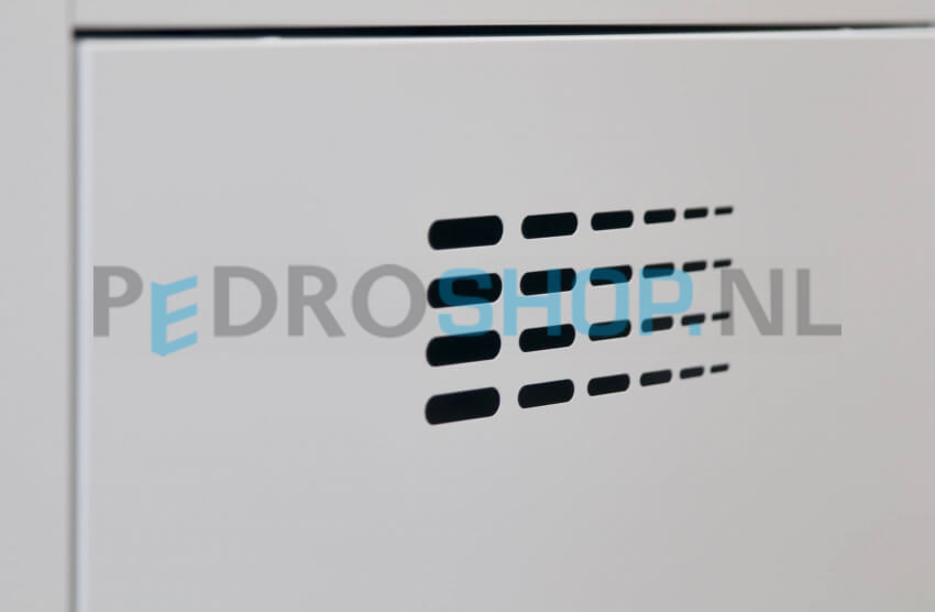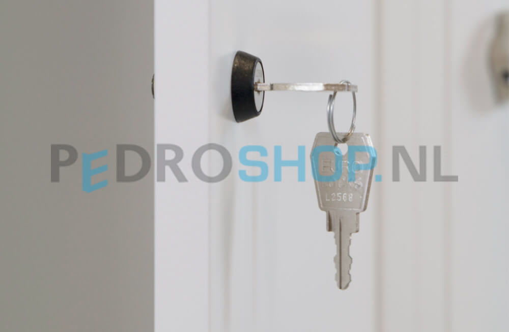 De garderobekast wordt standaard geleverd met een uniek cilinderslot inclusief twee sleutels. Dit slot beschikt over een moedersleutelfunctie, wat het beheer vergemakkelijkt in professionele omgevingen. Daarnaast zijn er meerdere sluitopties verkrijgbaar, zoals een valgrendelslot, een mechanisch cijferslot en een elektronisch pincodeslot.