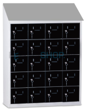 Met een afmeting van h109 x b81 x d30 cm biedt de kast voldoende ruimte voor 20 mini lockers, verdeeld over 4 kolommen met ieder 5 lockers. Elke locker heeft een afmeting van h16 x b15 x d27 cm.