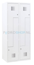 De SQ Classic 4-deurs Z-garderobekast is een ruimtebesparende en functionele opbergoplossing, ideaal voor het netjes opbergen van kleding, tassen en persoonlijke eigendommen. Dankzij het kenmerkende Z-deurontwerp beschikt iedere gebruiker over een eigen, ruim compartiment zonder dat dit extra vloerruimte vraagt — perfect voor kleedruimtes, sportfaciliteiten, scholen en bedrijven.
