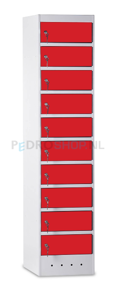SQ Classic laptopkast, 10-deurs, met stroomvoorziening, rood