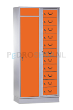 SQ combinatie kledingdistributie- en wasopvangkast, 11-deurs, oranje