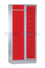 SQ combinatie kledingdistributie- en wasopvangkast, 11-deurs, rood