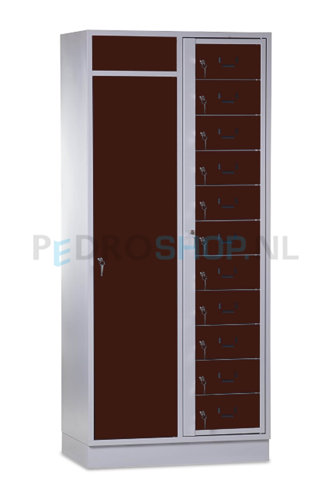 SQ combinatie kledingdistributie- en wasopvangkast, 11-deurs, bruin