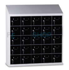 Met een afmeting van h109 x b100 x d30 cm biedt de kast voldoende ruimte voor 25 mini lockers, verdeeld over 5 kolommen met ieder 5 lockers. Elke locker heeft een afmeting van h16 x b15 x d27 cm.