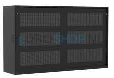 De kast is afgewerkt met een krasvaste poedercoating. Bij deze schuifdeurkast leveren we 4 legborden, 2 voor beide zijden. De legborden zijn geschikt voor opbergen van laterale hangmappen met een spoorbreedte van 33 cm. Om de 2 cm kent de kast de mogelijkheid om het legbord te plaatsen. De legborden kunnen een maximaal verdeeld gewicht dragen van 60 kg.